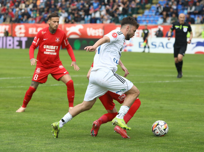 Descriere: Zoran Mitrov si Alesssandro Murgia in meciul de fotbal dintre FC Botosani si AFC Hermannstadt Sibiu, contand pentru Superliga Superbet Play-Out, desfasurat pe Stadionul Municipal din Botosani, duminica 18 mai 2025. © FOTO: Ionut Tabultoc/SPORT PICTURES