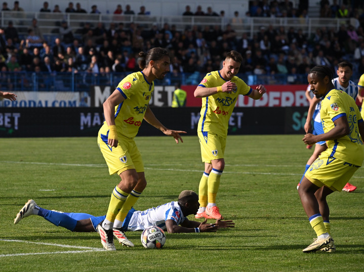 Descriere: Alexandru Mateiu, Marian Fernando Huja si Tidiane Keita in meciul de fotbal dintre Poli Iasi si FC Petrolul Ploiesti, contand pentru SuperLiga Superbet Play-Out, desfasurat pe Stadionul Emil Alexandrescu din Iasi, duminica 18 mai 2025. © FOTO: Tudi/SPORT PICTURES