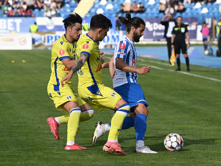 Descriere: Joao Pedro Reis Amaral si Sergiu Catalin Hanca, Ali Suhan Demirel in meciul de fotbal dintre Poli Iasi si FC Petrolul Ploiesti, contand pentru SuperLiga Superbet Play-Out, desfasurat pe Stadionul Emil Alexandrescu din Iasi, duminica 18 mai 2025. © FOTO: Tudi/SPORT PICTURES