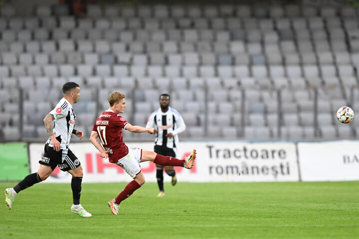Descriere: Tobias Christensen si Dan Nicolae Nistor in meciul de fotbal dintre FC Universitatea Cluj si FC Rapid 1923 Bucuresti, contand pentru Superliga Superbet Play-Off, desfasurat pe Stadionul Cluj Arena din Cluj-Napoca, sambata 24 mai 2025. © FOTO: Flaviu Buboi/SPORT PICTURES