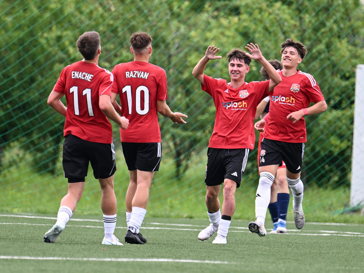 Descriere: Fotbalistii bucuresteni se bucura dupa un gol marcat la meciul de fotbal dintre FC Bihor Oradea U17 si FC Player Bucuresti U17, finala Cupa National U17, desfasurat pe Terenul sintetic din cadrul Centrului National de Fotbal din Buftea, miercuri 28 mai 2025. © FOTO:Razvan Pasarica/SPORT PICTURES