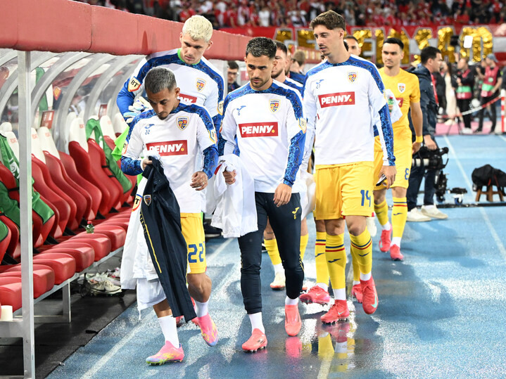 Descriere: Fotbalistii romani Alexandru Mitrita, Ştefan Târnovanu, Marius Marin si David Miculescu la meciul de fotbal dintre Austria si Romania, din cadrul Preliminariilor Campionatului Mondial 2026, desfasurat pe Stadionul Ernst Happel din Viena, sambata 7 iunie 2025. © FOTO:Razvan Pasarica/SPORT PICTURES