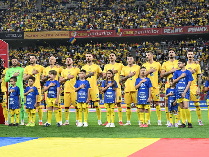Descriere: Fotbalistii romani la startul meciului de fotbal dintre Romania si Cipru, din cadrul Preliminariilor Campionatului Mondial 2026, desfasurat pe Arena Nationala din Bucuresti, marti 10 iunie 2025. © FOTO:Razvan Pasarica/SPORT PICTURES