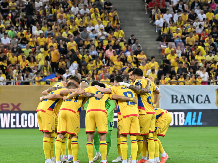 Descriere: Fotbalistii romani se incurajeaza inaintea meciului de fotbal dintre Romania si Cipru, din cadrul Preliminariilor Campionatului Mondial 2026, desfasurat pe Arena Nationala din Bucuresti, marti 10 iunie 2025. © FOTO:Razvan Pasarica/SPORT PICTURES