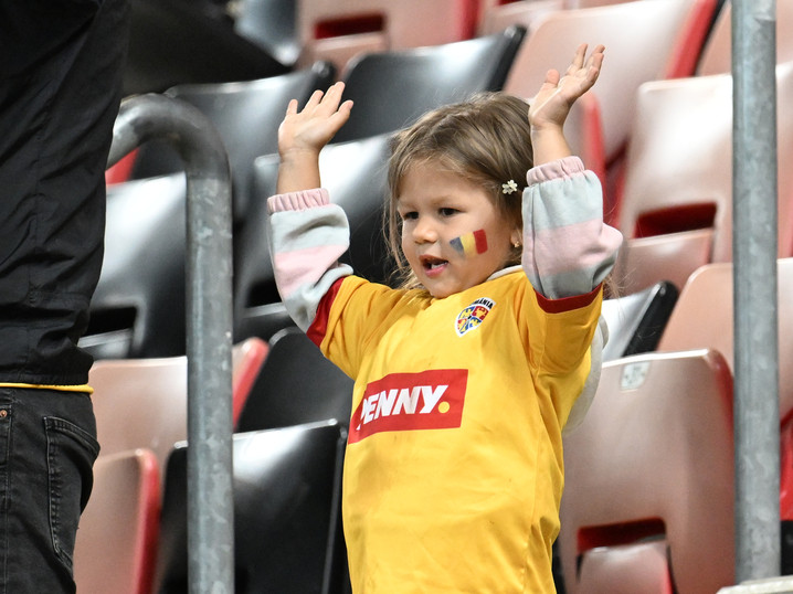 Descriere: O tanara suportera romanca isi incurajeaza favoritii la meciul de fotbal dintre Italia U21 si Romania U21, din cadrul UEFA EURO U21 2025, desfasurat pe Stadionul Anton Malatinský din Trnava, miercuri 11 iunie 2025. © FOTO:Razvan Pasarica/SPORT PICTURES