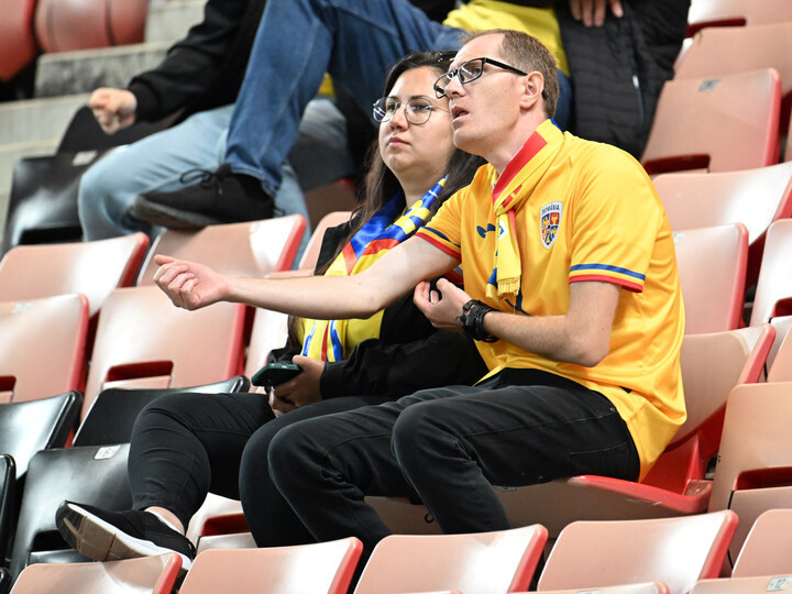 Descriere: Suporterii romani urmaresc meciul de fotbal dintre Italia U21 si Romania U21, din cadrul UEFA EURO U21 2025, desfasurat pe Stadionul Anton Malatinský din Trnava, miercuri 11 iunie 2025. © FOTO:Razvan Pasarica/SPORT PICTURES
