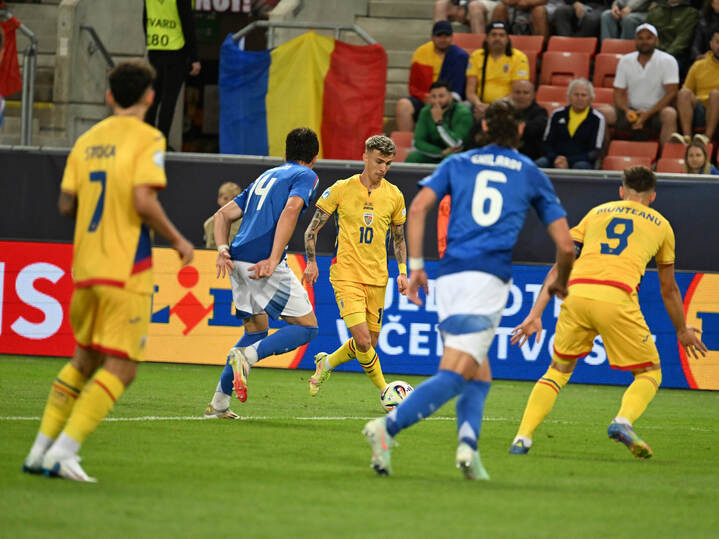 Descriere: Octavian Popescu in meciul de fotbal dintre Italia U21 si Romania U21, din cadrul UEFA EURO U21 2025, desfasurat pe Stadionul Anton Malatinský din Trnava, miercuri 11 iunie 2025. © FOTO:Razvan Pasarica/SPORT PICTURES