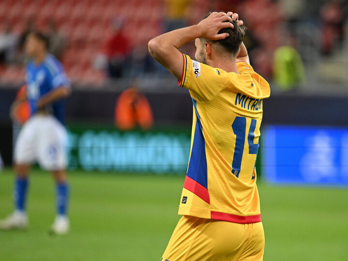 Descriere: Zoran Mitrov reactioneaza dupa o ratare avuta in meciul de fotbal dintre Italia U21 si Romania U21, din cadrul UEFA EURO U21 2025, desfasurat pe Stadionul Anton Malatinský din Trnava, miercuri 11 iunie 2025. © FOTO:Razvan Pasarica/SPORT PICTURES