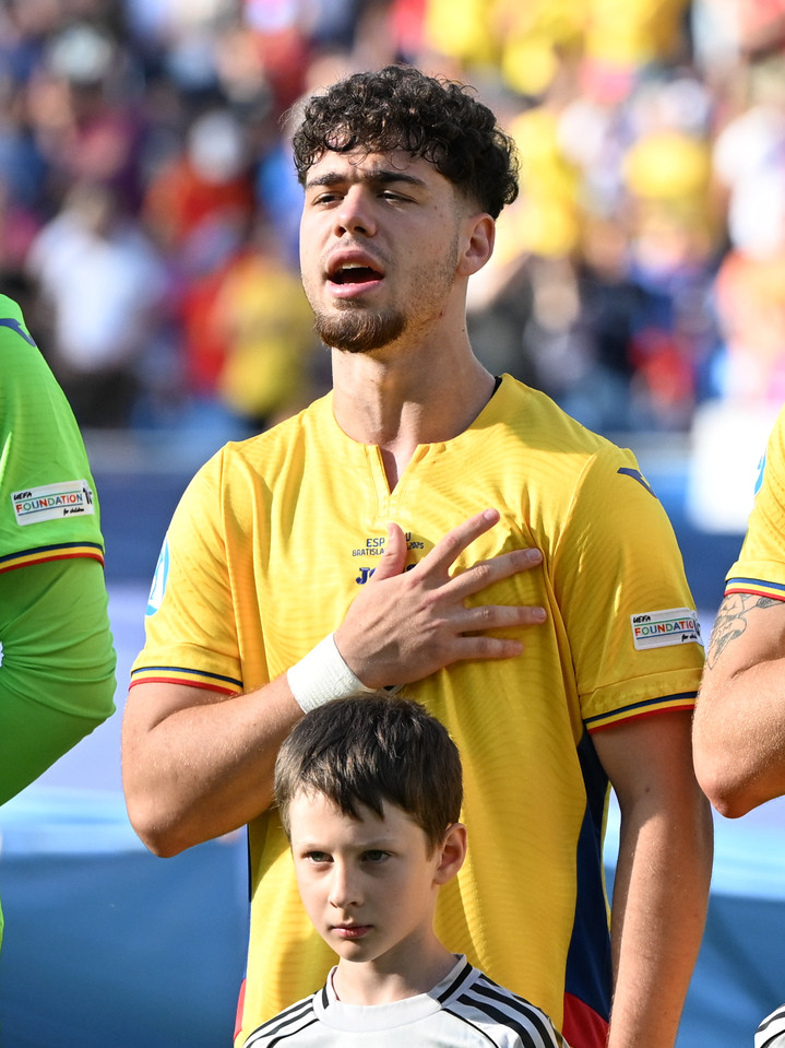Descriere: Andrei Borza la intonarea inaintea meciului de fotbal dintre Spania U21 si Romania U21, din cadrul UEFA EURO U21 din Slovacia, desfasurat pe Stadionul National de fotbal din Bratislava, sambata 14 iunie 2025. © FOTO:Razvan Pasarica/SPORT PICTURES