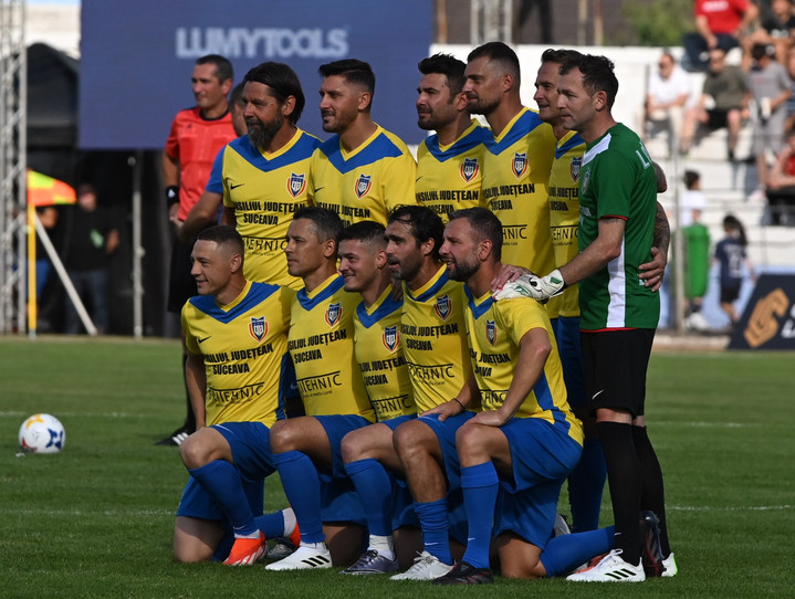 Descriere: Fotbalistii de la All Stars la o fotografie de grup realizata inaintea meciului de fotbal dintre UEFAntasticii si All Stars, meci oficial de retragere al lui Dorin Goian, desfasurat pe Stadionul Areni din Suceava, marti 24 iunie 2025. © FOTO: Tudi/SPORT PICTURES