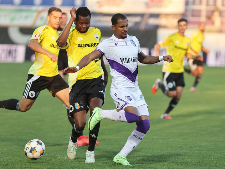 Descriere: Marins Caio Ferreira si Jonathan Cisse in meciul de fotbal dintre FC Arges si FC Universitatea Cluj, contand pentru Superliga Superbet, desfasurat pe Stadionul Orasenesc din Mioveni, sambata 19 septembrie 2025. © FOTO:Gheorghe Fluster/SPORT PICTURES