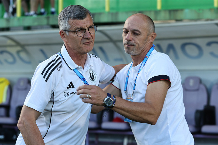 Descriere: Antrenorii celor doua echipe Bogdan Ioan Andone si Ovidiu Ioan Sabau se saluta inaintea meciului de fotbal dintre FC Arges si FC Universitatea Cluj, contand pentru Superliga Superbet, desfasurat pe Stadionul Orasenesc din Mioveni, sambata 19 septembrie 2025. © FOTO:Gheorghe Fluster/SPORT PICTURES