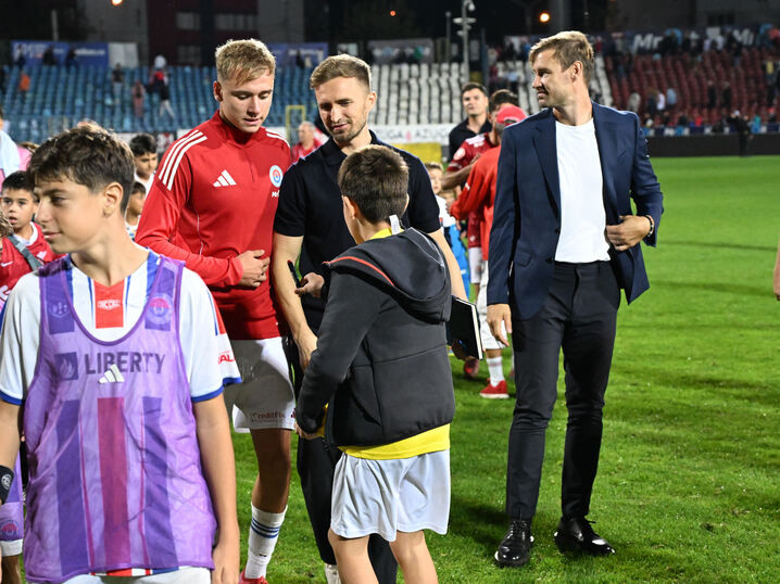 Descriere: Daniel Sandu, Ionut Neagu si Cristian Sîrghi se felicita dupa meciul dintre Otelul Galati si Universitatea Craiova, contand pentru Superliga Superbet, desfasurat pe Stadionul Otelul din Galati, sambata 20 septembrie 2025. © FOTO:Razvan Pasarica/SPORT PICTURES