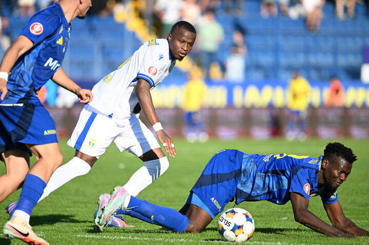 Descriere: Danel Jordan Dongmo si Nkama Christ Afalna in meciul dintre Unirea Slobozia si Petrolul Ploiesti, contand pentru Superliga Superbet, desfasurat pe Clinceni Arena din Clinceni, duminica 21 septembrie 2025. © FOTO:Razvan Pasarica/SPORT PICTURES