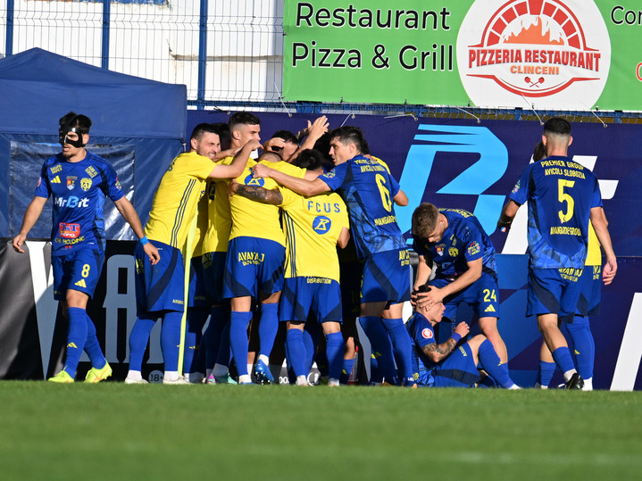 Descriere: Bucurie a fotbalistilor ialomiteni Ionut Viorel Coada, Florin Flavius Purece, Marius Paul Antoche si Vlad Marian Pop dupa un gol marcat in meciul dintre Unirea Slobozia si Petrolul Ploiesti, contand pentru Superliga Superbet, desfasurat pe Clinceni Arena din Clinceni, duminica 21 septembrie 2025. © FOTO:Razvan Pasarica/SPORT PICTURES
