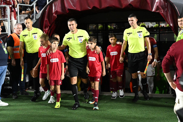 Descriere: Brigada de arbitri formată din Imre Laszlo Bucsi, Adrian Viorel Cojocaru si Alexandru Filip in meciul de fotbal dintre Rapid Bucuresti si FC Hermannstadt, din cadrul Superligii Superbet, desfasurat pe Superbet Arena-Giulesti din Bucuresti, duminica 21 septembrie 2025. © FOTO:Razvan Pasarica/SPORT PICTURES