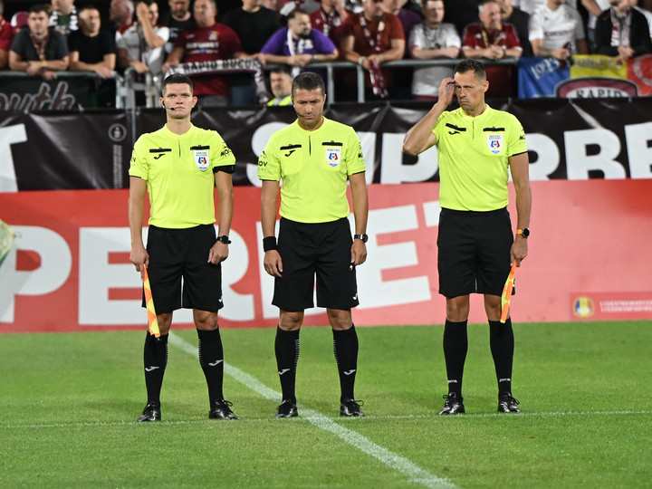 Descriere: Brigada de arbitri formată din Imre Laszlo Bucsi, Adrian Viorel Cojocaru si Alexandru Filip la meciul de fotbal dintre Rapid Bucuresti si FC Hermannstadt, din cadrul Superligii Superbet, desfasurat pe Superbet Arena-Giulesti din Bucuresti, duminica 21 septembrie 2025. © FOTO:Razvan Pasarica/SPORT PICTURES