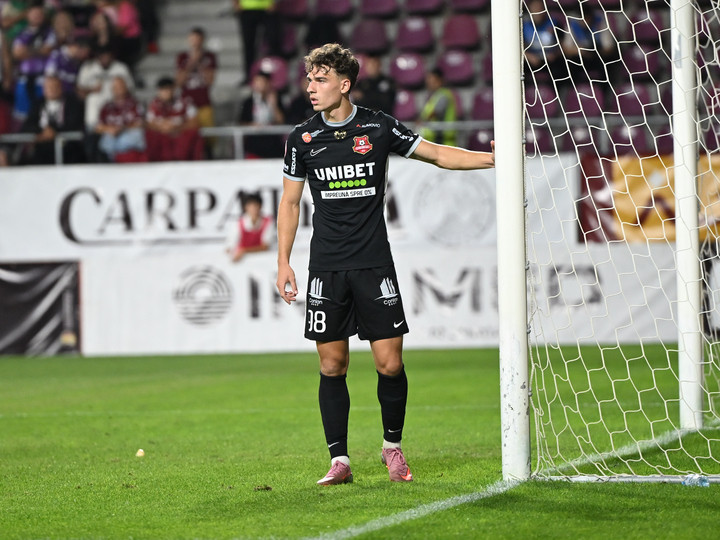 Descriere: Kevin Andrei Ciubotaru reacționează in meciul de fotbal dintre Rapid Bucuresti si FC Hermannstadt, din cadrul Superligii Superbet, desfasurat pe Superbet Arena-Giulesti din Bucuresti, duminica 21 septembrie 2025. © FOTO:Razvan Pasarica/SPORT PICTURES