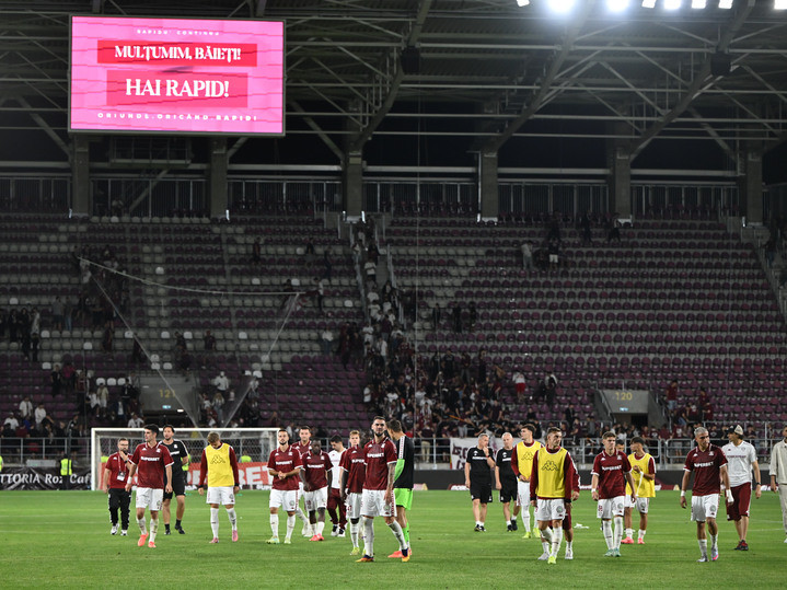 Descriere: Fotbalistii rapidisti saluta galeria dupa meciul de fotbal dintre Rapid Bucuresti si FC Hermannstadt, din cadrul Superligii Superbet, desfasurat pe Superbet Arena-Giulesti din Bucuresti, duminica 21 septembrie 2025. © FOTO:Razvan Pasarica/SPORT PICTURES