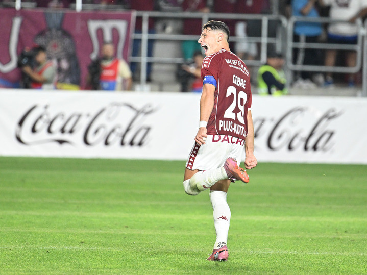 Descriere: Mihai Alexandru Dobre se bucură dupa un gol marcat in meciul de fotbal dintre Rapid Bucuresti si FC Hermannstadt, din cadrul Superligii Superbet, desfasurat pe Superbet Arena-Giulesti din Bucuresti, duminica 21 septembrie 2025. © FOTO:Razvan Pasarica/SPORT PICTURES