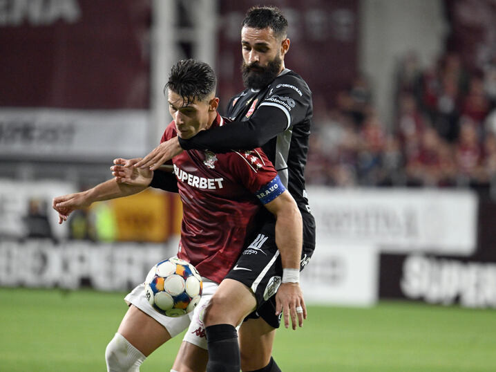 Descriere: Mihai Alexandru Dobre si Vahid Selimovic in meciul de fotbal dintre Rapid Bucuresti si FC Hermannstadt, din cadrul Superligii Superbet, desfasurat pe Superbet Arena-Giulesti din Bucuresti, duminica 21 septembrie 2025. © FOTO:Razvan Pasarica/SPORT PICTURES