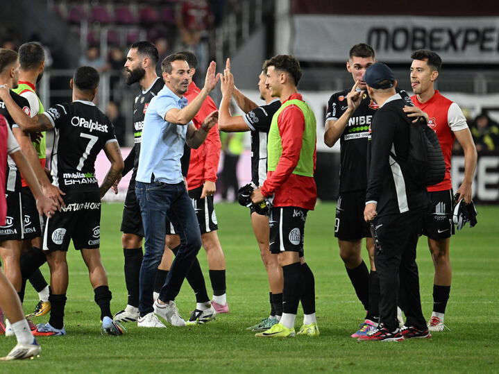Descriere: Marius Maldarasanu isi felicita jucatorii printre care Marko Gjorgjievski dupa meciul de fotbal dintre Rapid Bucuresti si FC Hermannstadt, din cadrul Superligii Superbet, desfasurat pe Superbet Arena-Giulesti din Bucuresti, duminica 21 septembrie 2025. © FOTO:Razvan Pasarica/SPORT PICTURES