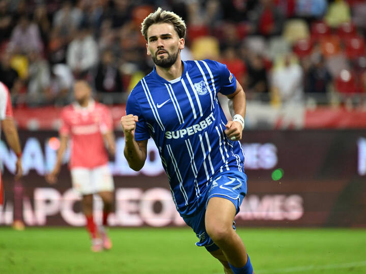 Descriere: Diogo Sa Ramalho se bucură dupa un gol marcat in meciul de fotbal dintre Dinamo Bucuresti si Farul Constanta, din cadrul Superligii Superbet, desfasurat pe Arena Nationala din Bucuresti, luni 22 septembrie 2025. © FOTO:Razvan Pasarica/SPORT PICTURES
