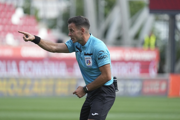 Descriere: Arbitrul central Cristian Moldoveanu in meciul de fotbal dintre UTA Arad si FK Csikszereda Miercurea Ciuc, contand pentru Superliga Superbet, desfasurat pe Arena Francisc Neuman din Arad, sambata 27 septembrie 2025. © FOTO:Alexandra Fechete/SPORT PICTURES