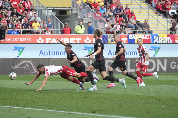 Descriere: Marius Catalin Coman, Valentin Ionut Costache si Raul Ioan Palmes, Maks Juraj Celic, János Ferenczi in meciul de fotbal dintre UTA Arad si FK Csikszereda Miercurea Ciuc, contand pentru Superliga Superbet, desfasurat pe Arena Francisc Neuman din Arad, sambata 27 septembrie 2025. © FOTO:Alexandra Fechete/SPORT PICTURES