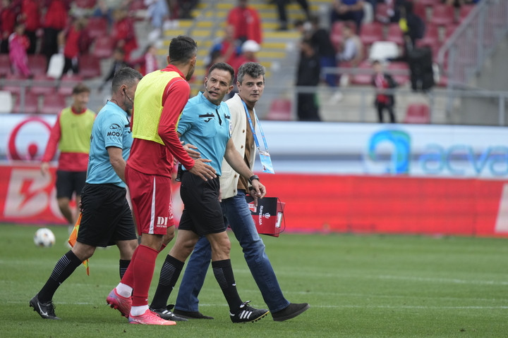 Descriere: Arbitrul central Cristian Moldoveanu si Alexandru Constantin Benga la meciul de fotbal dintre UTA Arad si FK Csikszereda Miercurea Ciuc, contand pentru Superliga Superbet, desfasurat pe Arena Francisc Neuman din Arad, sambata 27 septembrie 2025. © FOTO:Alexandra Fechete/SPORT PICTURES