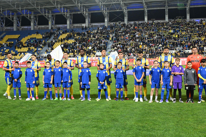 Descriere: Fotbalistii ploiesteni la startul meciului dintre Petrolul Ploiesti si Rapid Bucuresti, contand pentru Superliga Superbet, desfasurat pe Stadionul Ilie Oana din Ploiesti, sambata 27 septembrie 2025. © FOTO:Razvan Pasarica/SPORT PICTURES