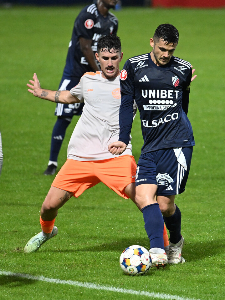 Descriere: Tous Damia Sabater si Ioan Andrei Vasile Dumiter in meciul de fotbal dintre Metaloglobus Bucuresti si FC Botosani, contand pentru Superliga Superbet, desfasurat pe Clinceni Arena din Clinceni, luni 29 septembrie 2025. © FOTO:Razvan Pasarica/SPORT PICTURES