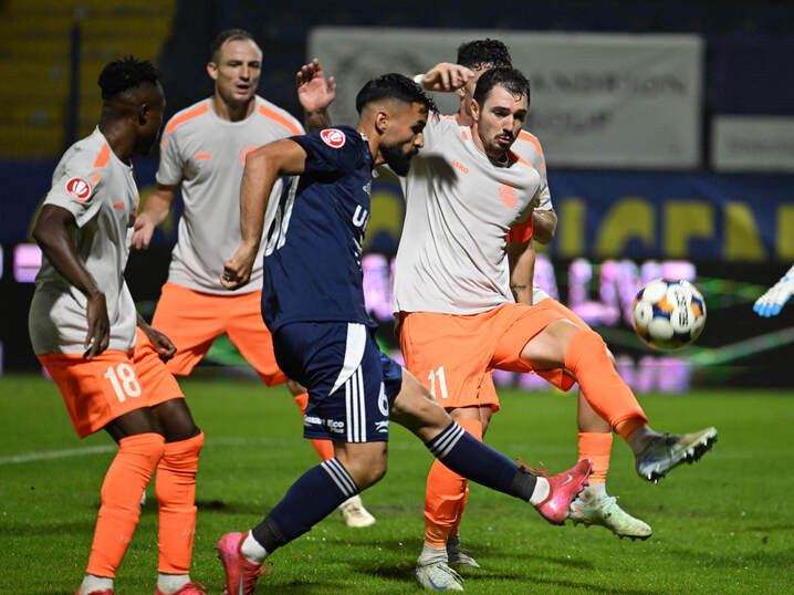 Descriere: Enriko Papa si Dragos Ionut Huiban in meciul de fotbal dintre Metaloglobus Bucuresti si FC Botosani, contand pentru Superliga Superbet, desfasurat pe Clinceni Arena din Clinceni, luni 29 septembrie 2025. © FOTO:Razvan Pasarica/SPORT PICTURES