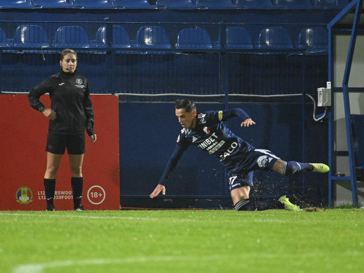 Descriere: George Alexandru Cimpanu se bucura dupa un gol marcat sub privirile arbitrului de rezerva Ionela Alina Pesu in meciul de fotbal dintre Metaloglobus Bucuresti si FC Botosani, contand pentru Superliga Superbet, desfasurat pe Clinceni Arena din Clinceni, luni 29 septembrie 2025. © FOTO:Razvan Pasarica/SPORT PICTURES