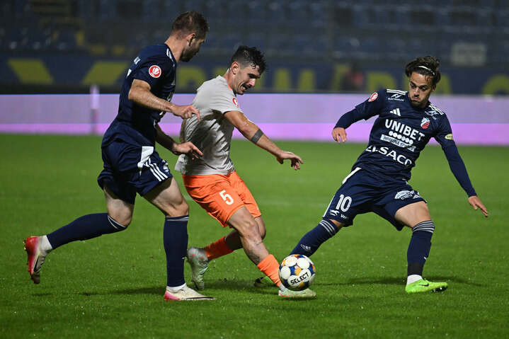 Descriere: Mykola Kovtaliuk, Tous Damia Sabater si Stefan Bodisteanu in meciul de fotbal dintre Metaloglobus Bucuresti si FC Botosani, contand pentru Superliga Superbet, desfasurat pe Clinceni Arena din Clinceni, luni 29 septembrie 2025. © FOTO:Razvan Pasarica/SPORT PICTURES