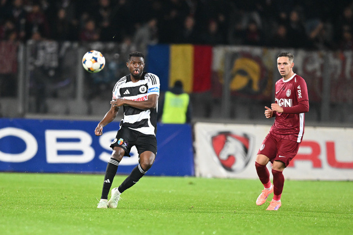 Descriere: Jonathan Cisse si Louis Munteanu in meciul de fotbal dintre FC Universitatea Cluj si FC CFR 1907 Cluj, contand pentru Superliga Superbet, desfasurat pe Cluj Arena din Cluj-Napoca, luni 29 septembrie 2025. © FOTO:Flaviu Buboi/SPORT PICTURES