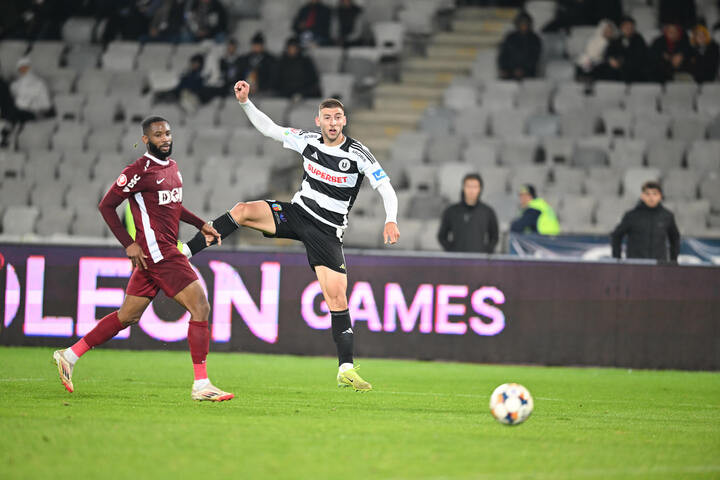 Descriere: Jovo Lukic si Marcus Regis Coco in meciul de fotbal dintre FC Universitatea Cluj si FC CFR 1907 Cluj, contand pentru Superliga Superbet, desfasurat pe Cluj Arena din Cluj-Napoca, luni 29 septembrie 2025. © FOTO:Flaviu Buboi/SPORT PICTURES