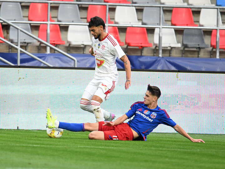 Descriere: Bogdan Florin Otelita si Ianis Fabian Doana in meciul de fotbal dintre Steaua Bucuresti si Sepsi OSK Sfantu Gheorghe, contand pentru Liga a-2-a Casa Pariurilor, desfasurat pe Stadionul Steaua-Ghencea din Bucuresti, marti 30 septembrie 2025. © FOTO:Razvan Pasarica/SPORT PICTURES