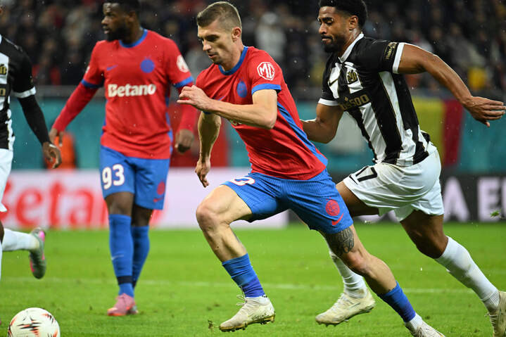 Descriere: Florin Lucian Tănase si Saidy Janko in meciul de fotbal dintre FCSB si Young Boys Berna, contand pentru UEFA Europa League, desfasurat pe Arena Nationala din Bucuresti, joi 2 octombrie 2025. © FOTO:Razvan Pasarica/SPORT PICTURES