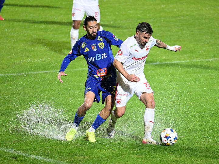 Descriere: Eduard Marian Florescu si Danniel Charles Armstrong in meciul dintre Unirea Slobozia si Dinamo Bucuresti, contand pentru Superliga Superbet, desfasurat pe Clinceni Arena din Clinceni, vineri 3 octombrie 2025. © FOTO:Razvan Pasarica/SPORT PICTURES