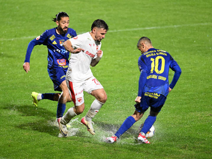 Descriere: Eduard Marian Florescu, Danniel Charles Armstrong si Constantin Adrian Toma in meciul dintre Unirea Slobozia si Dinamo Bucuresti, contand pentru Superliga Superbet, desfasurat pe Clinceni Arena din Clinceni, vineri 3 octombrie 2025. © FOTO:Razvan Pasarica/SPORT PICTURES