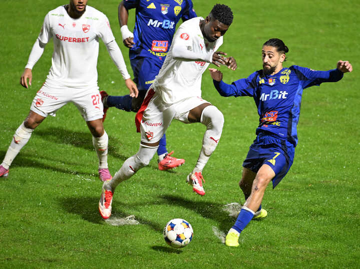 Descriere: Kennedy Kofi Boateng si Eduard Marian Florescu in meciul dintre Unirea Slobozia si Dinamo Bucuresti, contand pentru Superliga Superbet, desfasurat pe Clinceni Arena din Clinceni, vineri 3 octombrie 2025. © FOTO:Razvan Pasarica/SPORT PICTURES