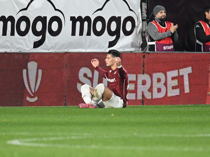 Descriere: Mihai Alexandru Dobre se bucură dupa un gol marcat in meciul de fotbal dintre Rapid Bucuresti si Farul Constanta, din cadrul Superligii Superbet, desfasurat pe Superbet Arena-Giulesti din Bucuresti, sambata 4 octombrie 2025. © FOTO:Razvan Pasarica/SPORT PICTURES