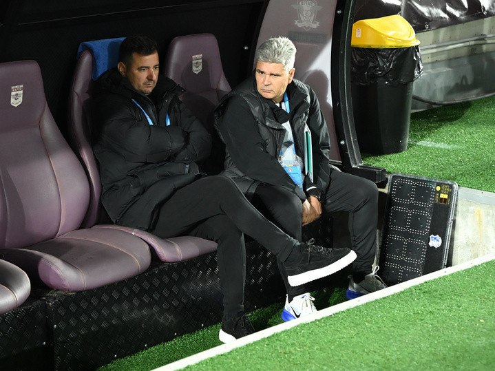 Descriere: Ianis Alin Zicu si Cristian Sava pe banca constanteana la meciul de fotbal dintre Rapid Bucuresti si Farul Constanta, din cadrul Superligii Superbet, desfasurat pe Superbet Arena-Giulesti din Bucuresti, sambata 4 octombrie 2025. © FOTO:Razvan Pasarica/SPORT PICTURES