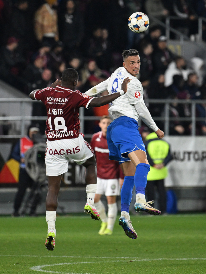 Descriere: Abdul Kader Keita si Jakub Vojtus in meciul de fotbal dintre Rapid Bucuresti si Farul Constanta, din cadrul Superligii Superbet, desfasurat pe Superbet Arena-Giulesti din Bucuresti, sambata 4 octombrie 2025. © FOTO:Razvan Pasarica/SPORT PICTURES