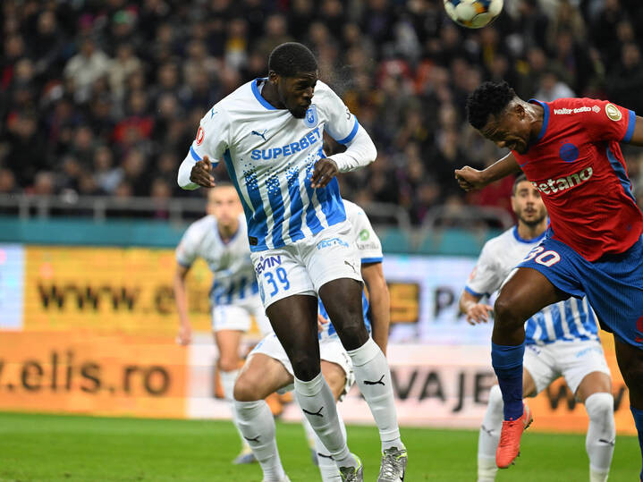 Descriere: Aime Steven Nsasa Nsimba Labe si Siyabonga Ngezana in meciul dintre FCSB si Universitatea Craiova, contand pentru Superliga Superbet, desfasurat pe Arena Nationala din Bucuresti, duminica 5 octombrie 2025. © FOTO:Razvan Pasarica/SPORT PICTURES