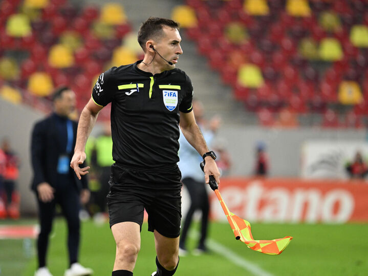 Descriere: Arbitrul asistent Mihai Marius Marica reacționează in meciul dintre FCSB si Universitatea Craiova, contand pentru Superliga Superbet, desfasurat pe Arena Nationala din Bucuresti, duminica 5 octombrie 2025. © FOTO:Razvan Pasarica/SPORT PICTURES