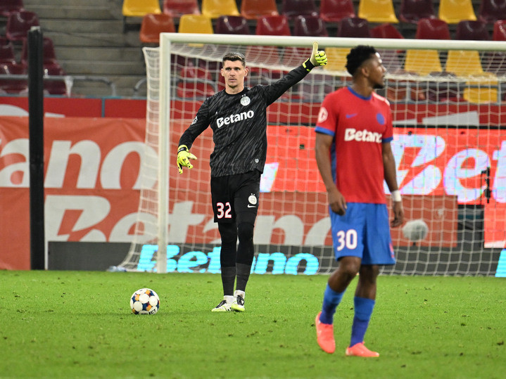 Descriere: Ștefan Târnovanu reacționează in meciul dintre FCSB si Universitatea Craiova, contand pentru Superliga Superbet, desfasurat pe Arena Nationala din Bucuresti, duminica 5 octombrie 2025. © FOTO:Razvan Pasarica/SPORT PICTURES