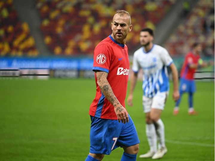 Descriere: Denis Alibec reacționează in meciul dintre FCSB si Universitatea Craiova, contand pentru Superliga Superbet, desfasurat pe Arena Nationala din Bucuresti, duminica 5 octombrie 2025. © FOTO:Razvan Pasarica/SPORT PICTURES