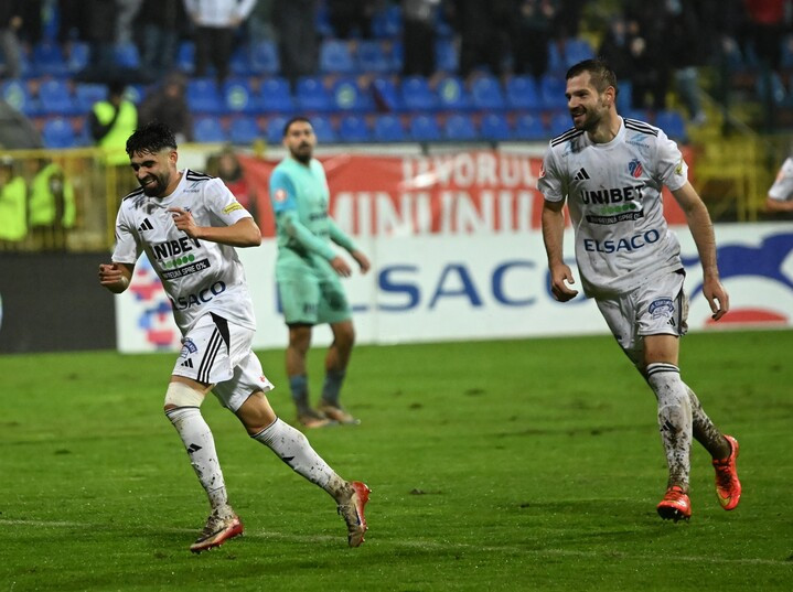 Descriere: Arpad Sebastian Mailat se bucura alaturi de Mykola Kovtaliuk dupa un gol marcat in meciul de fotbal dintre FC Botosani si UTA Arad, contand pentru Superliga Superbet, desfasurat pe Stadionul Municipal din Botosani, luni 6 octombrie 2025. © FOTO:Tudy/SPORT PICTURES